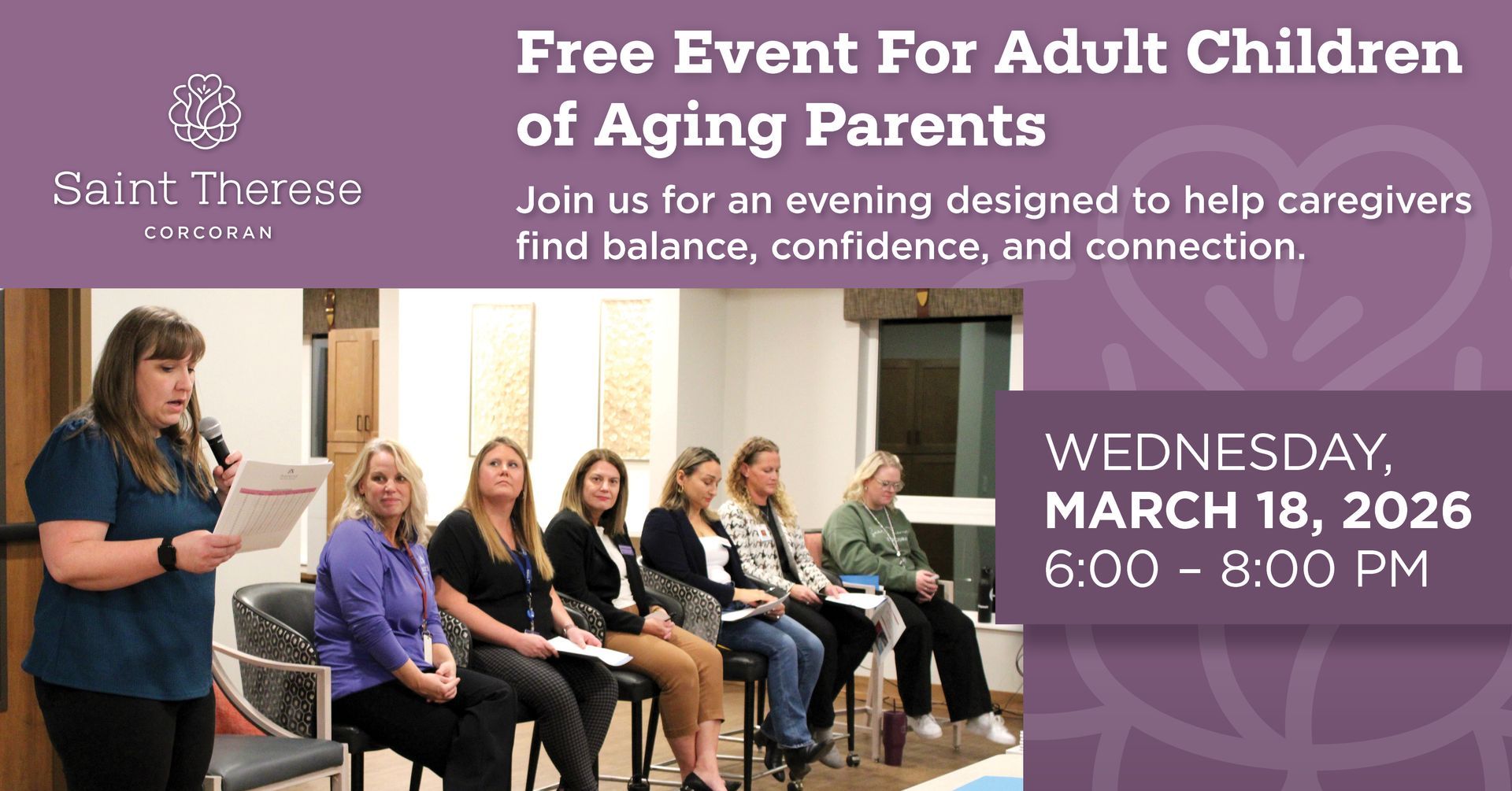 This special, free program is designed especially for adult children who are beginning to think about the next steps for their aging parents. You will receive practical guidance, expert advice, and emotional support to help you navigate important decisions with confidence.