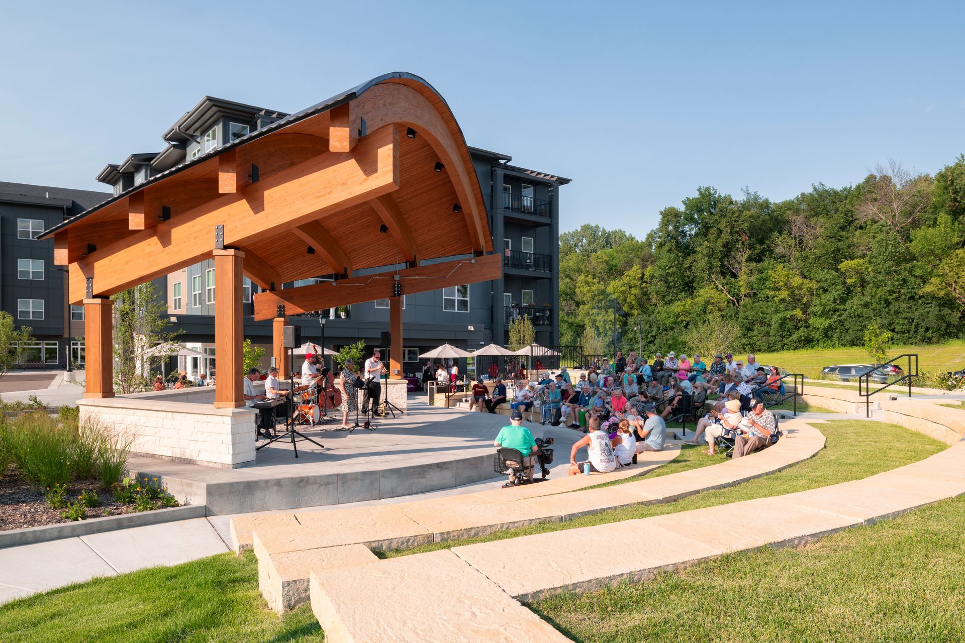 This vibrant new community fosters meaningful intergenerational connections and a strong bond with the broader community. Designed to be inviting for all, the campus encourages visitors to relax with a cup of coffee, swim in the indoor pool, enjoy a concert in the outdoor amphitheater, or stay active in the wellness center. Saint Therese of Corcoran brings energy and life to the area.