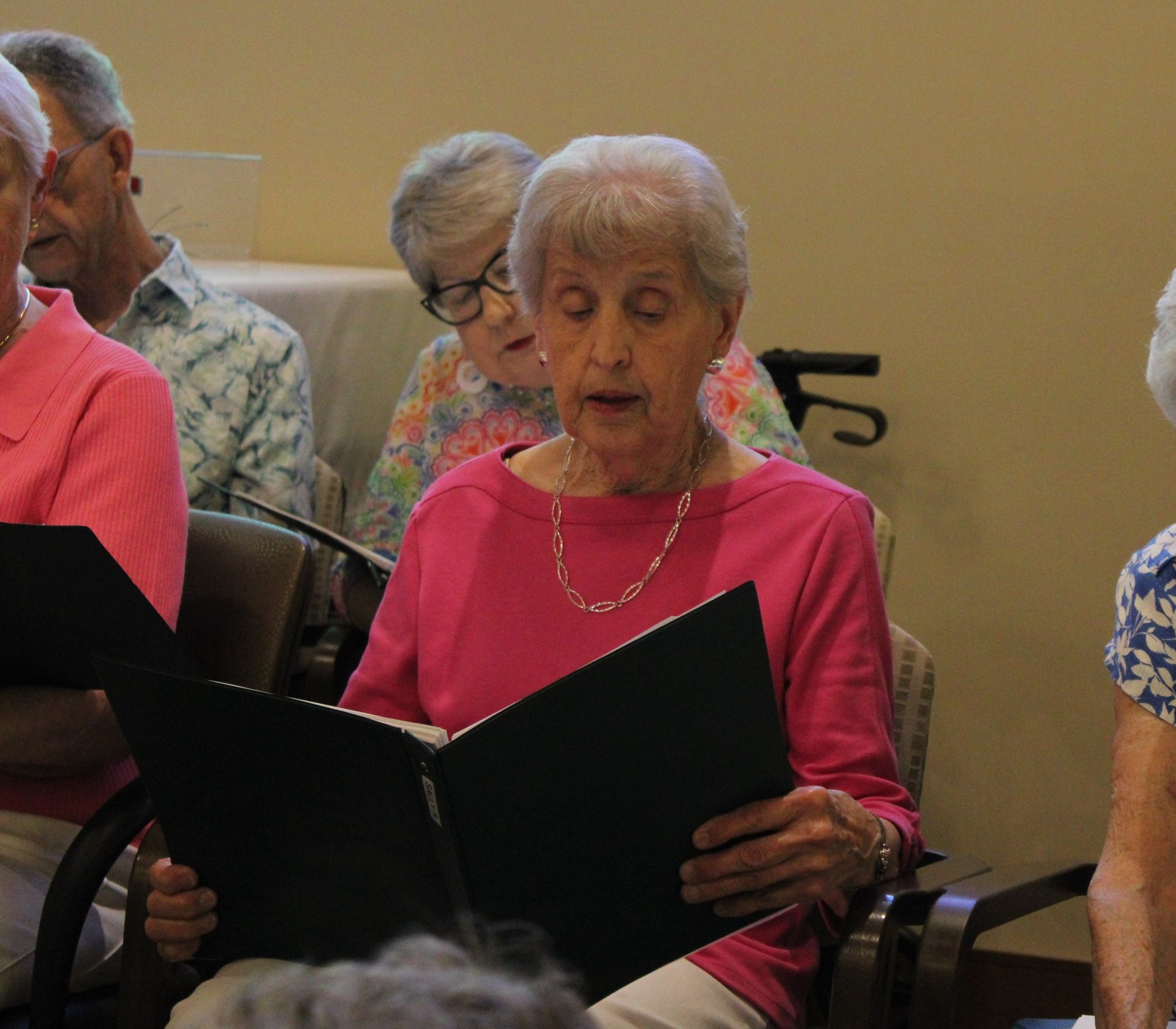 Hannah Mallow, Life Enrichment Director at Saint Therese of Woodbury, also sings in the choir—while helping two residents from the long-term care area who are also members. She’s witnessed the impact up close. “I think it’s really an opportunity for them to have a reason to gather,” she said. “Music is such a powerful thing for the brain. Members have been coming for a long time and it’s important to them. A little community. They take pride in it.”