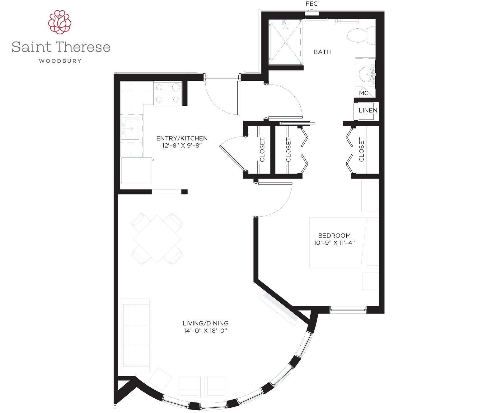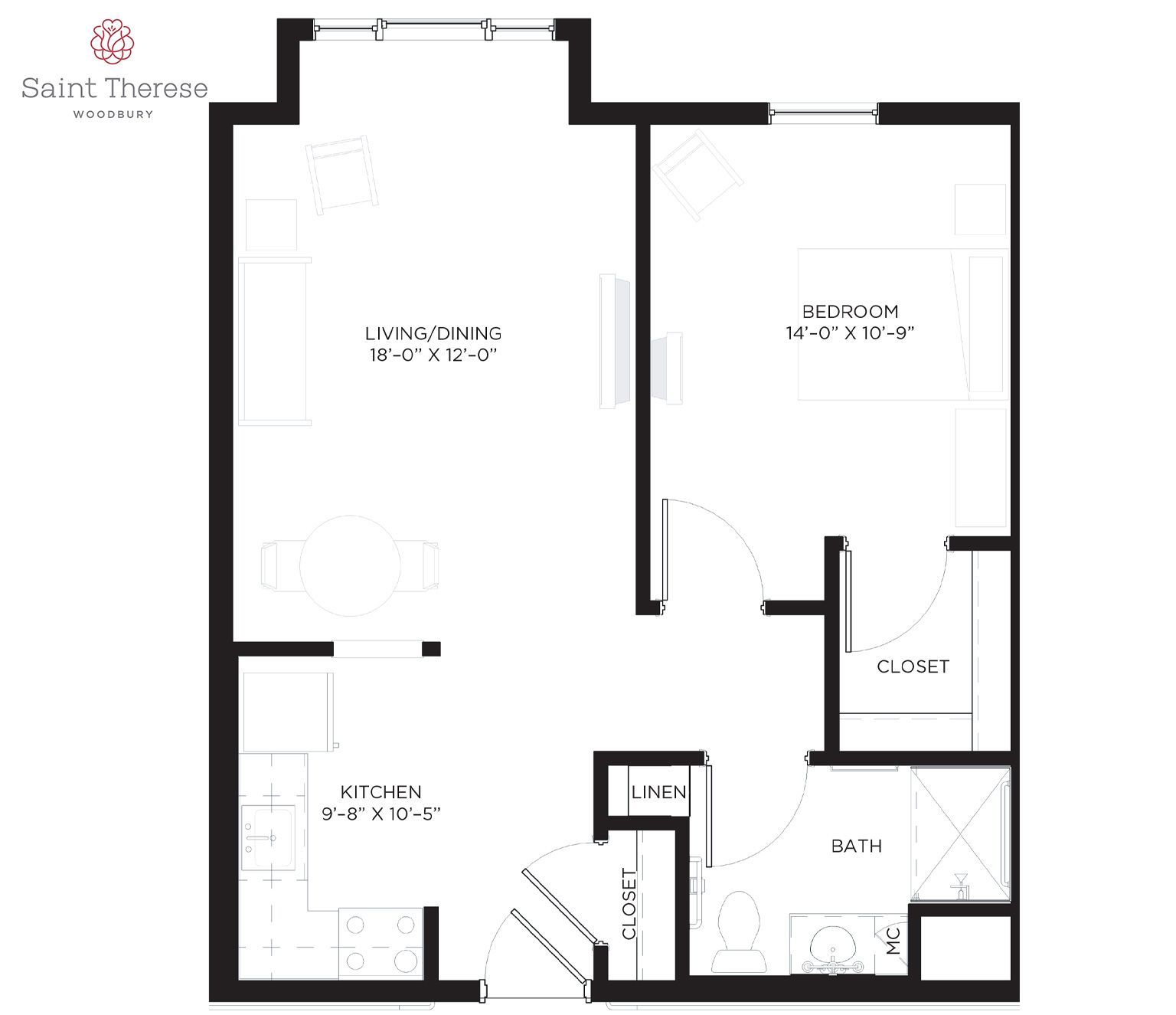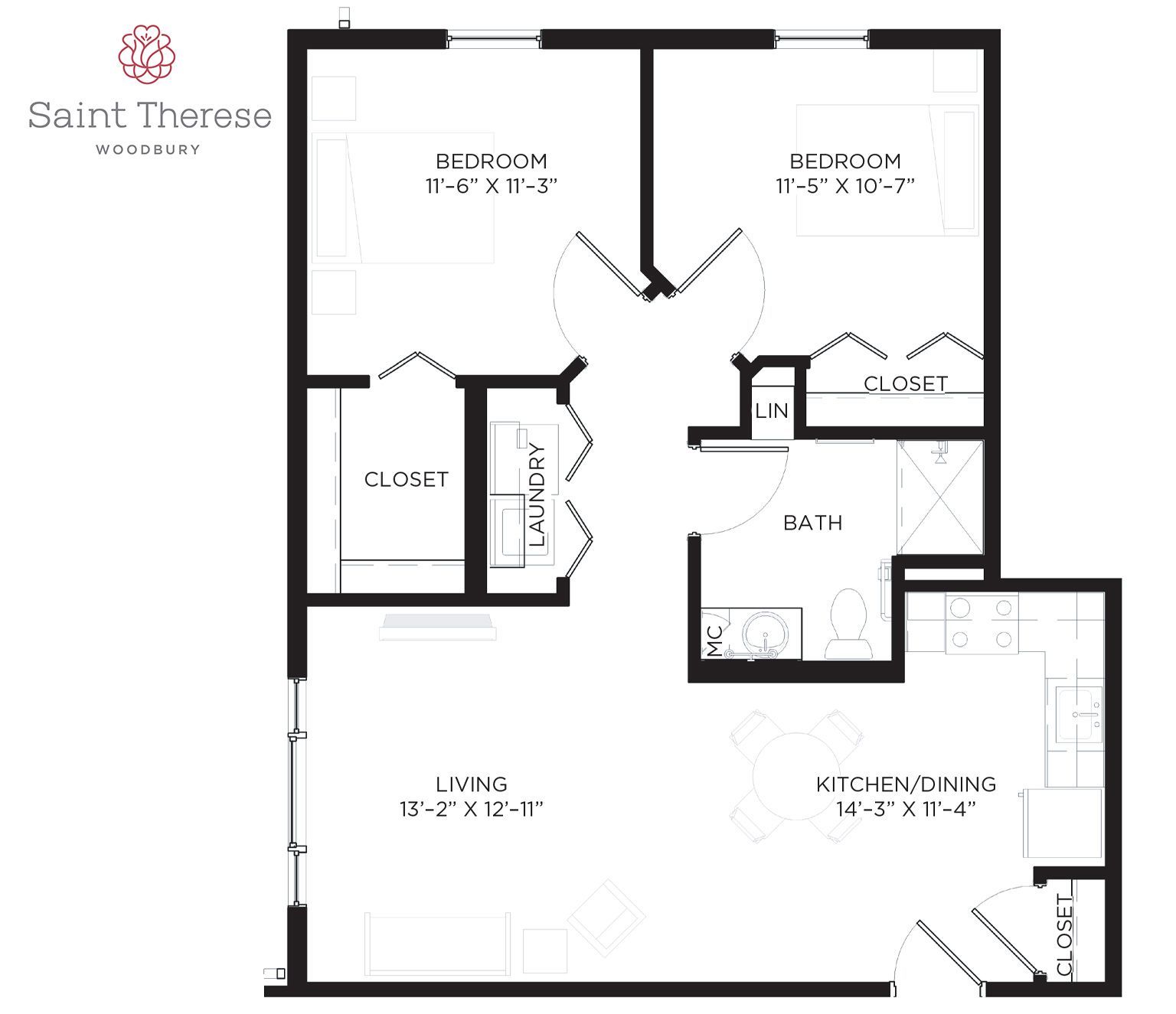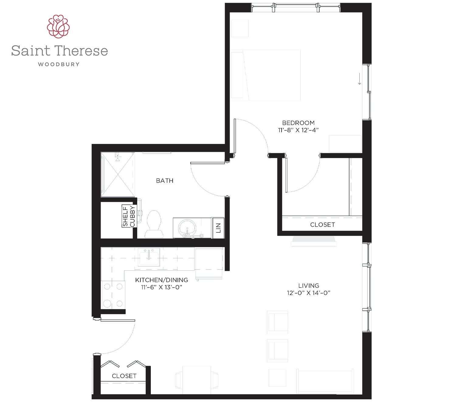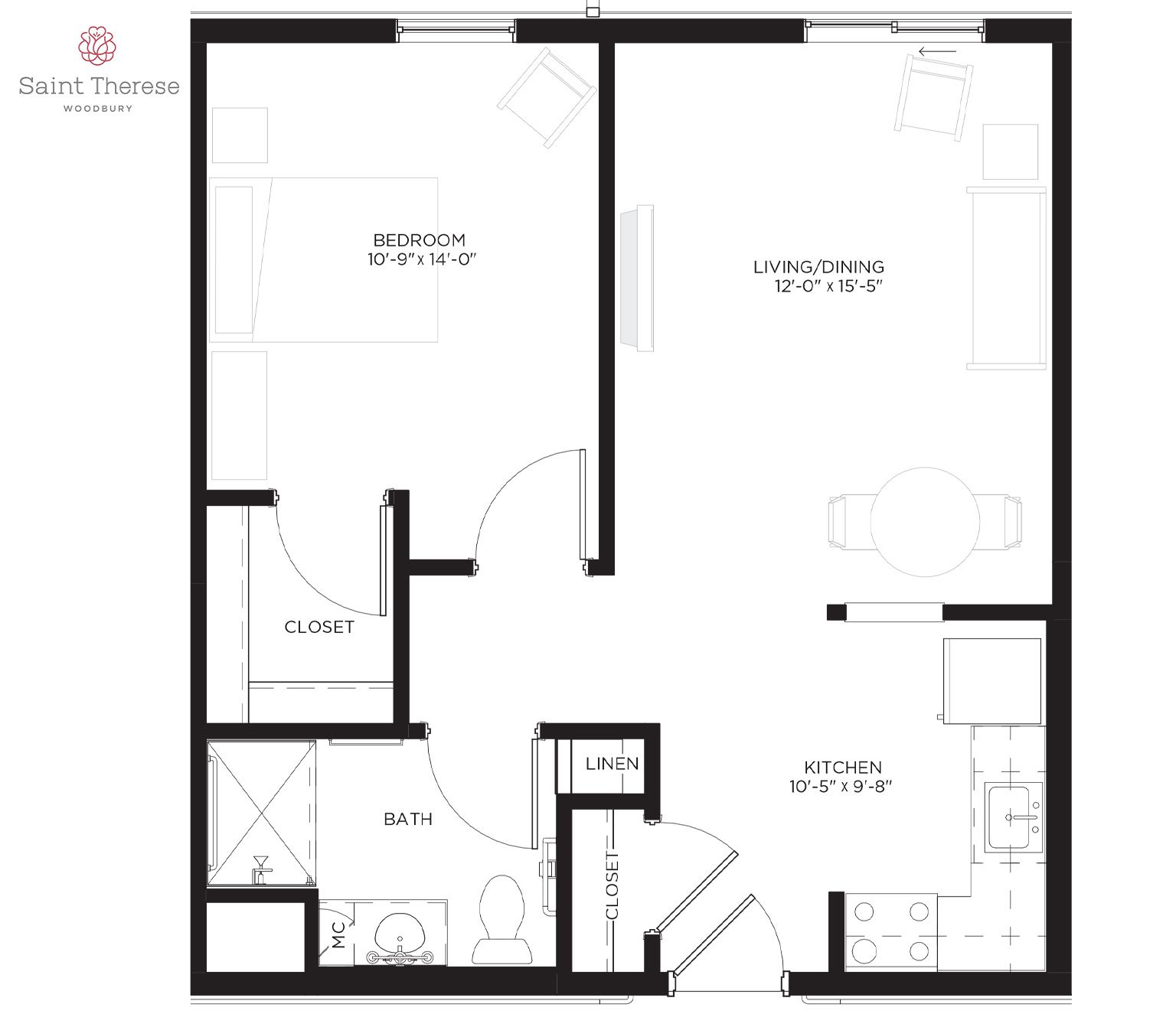 Saint Therese of Woodbury features a broad selection of one- and two-bedroom senior apartments up to 1,030 square feet for assisted living. Each inviting option provides an assortment of included amenities and multiple levels of personal care.