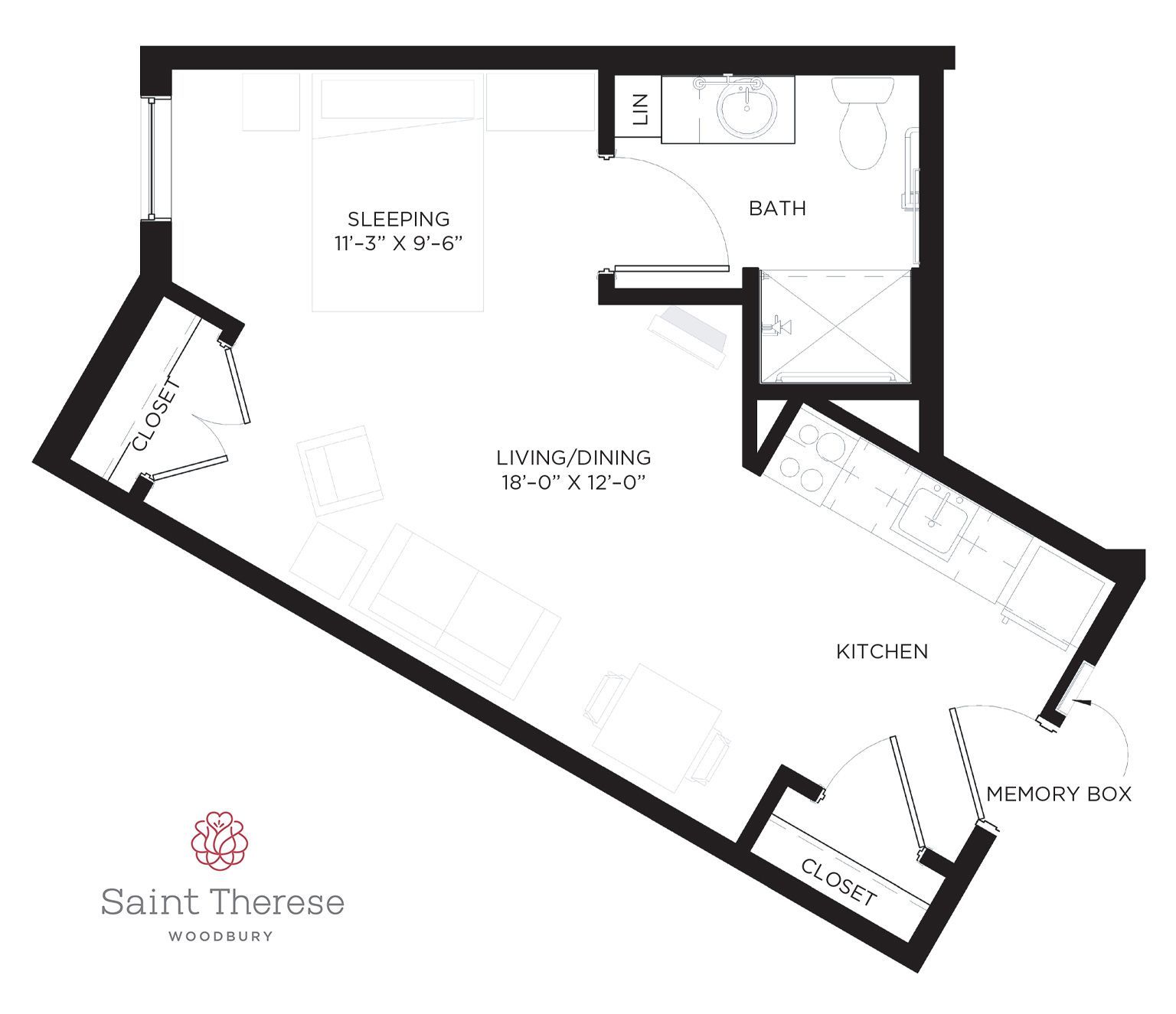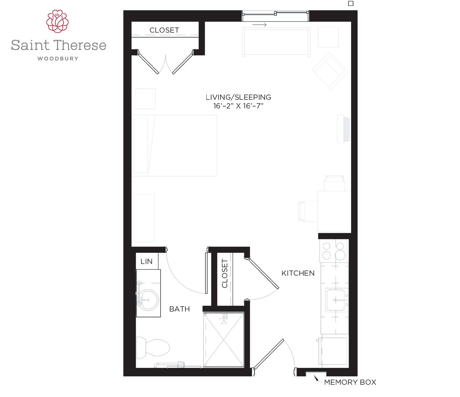 Private, studio apartments accompanied by essential care levels are ideal for residents to safely age-in-place while living with dementia. Saint Therese of Woodbury’s neighborhood setting provides residents with every day opportunities to grow physical, emotional and social well-being.