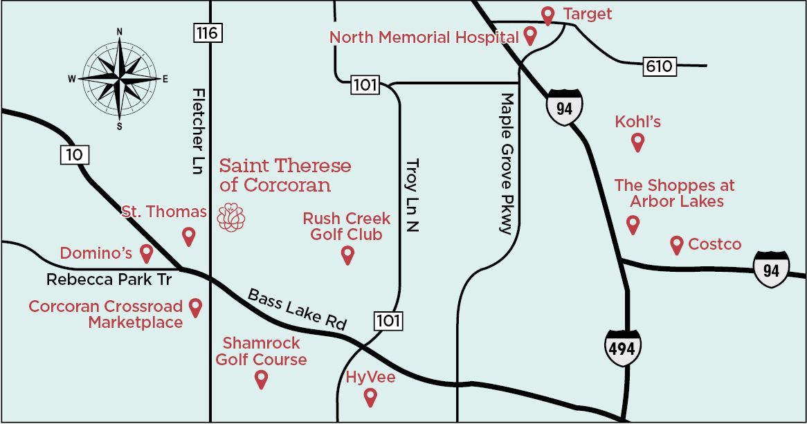 Saint Therese has developed a unique senior community on 13 acres in the City of Corcoran’s Southeast District, with independent & assisted living apartments, and memory care, all on one campus. Providing peace of mind for whatever the future may bring.